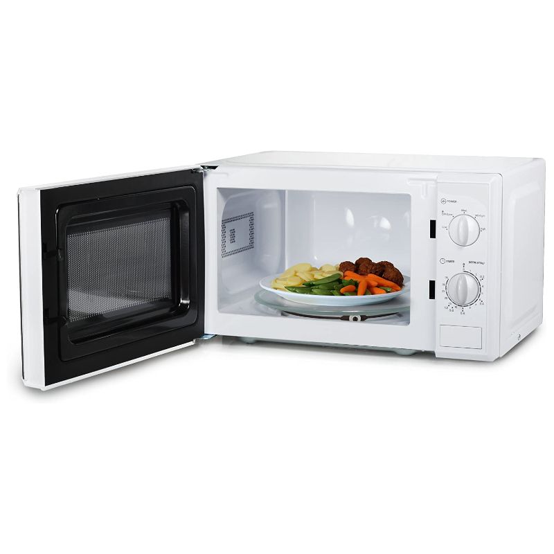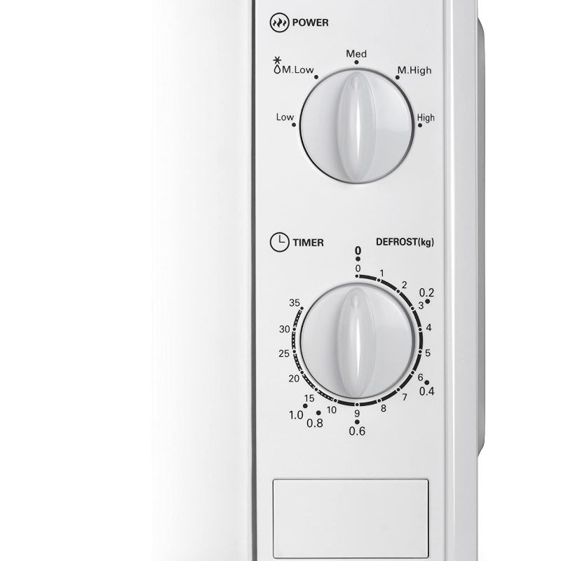 Microondas de fácil uso con capacidad de 20L. Dispone de temporizador analógico regulable con alarma 35 min. Posee cinco ajustes diferentes para calentar o descongelar.Bloqueo de seguridad para niños.Base antideslizante.