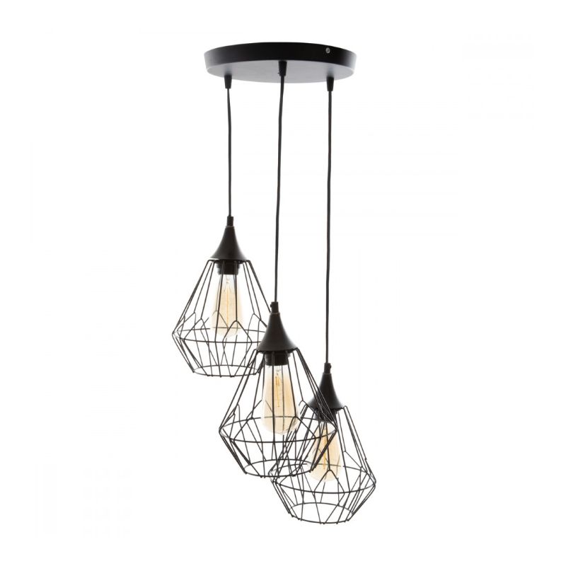 Este colgante metálico triple de diseño geométrico permite completar una decoración industrial y moderna.Con bombillos de globo se podrá crear un ambiente diferente.Bombillos no incluidos.