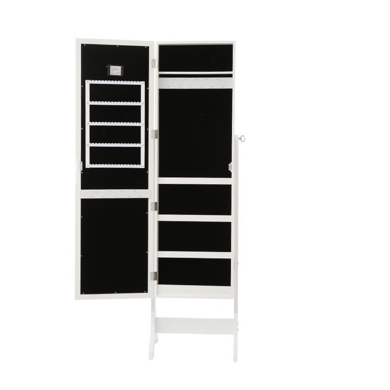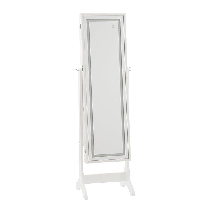 Armario joyero con espejo, para mantener los abalorios en orden y decorar la habitación con su diseño sencillo. Consta de ganchos en su interior y luz led alrededor del espejo.